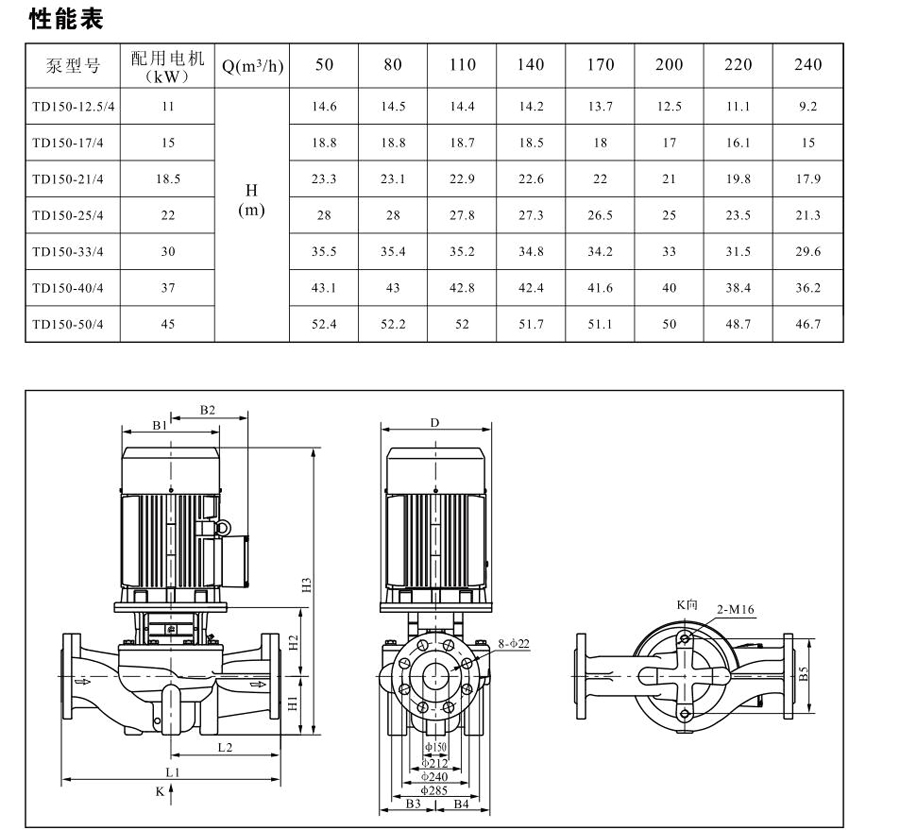 TD150系列單級管道離心泵,配有標準電機和機械密封。此類產(chǎn)品的結(jié)構(gòu)與相近類型產(chǎn)品相比,更不易受到泵送液體中雜質(zhì)的影響。產(chǎn)品設(shè)計為頂部可拉出的拆裝形式,其可以在不影響管路系統(tǒng)的情況下對泵進行維修。所有泵采用創(chuàng)新式便拆式機械密封,更好機械密封無需拆卸電機。
