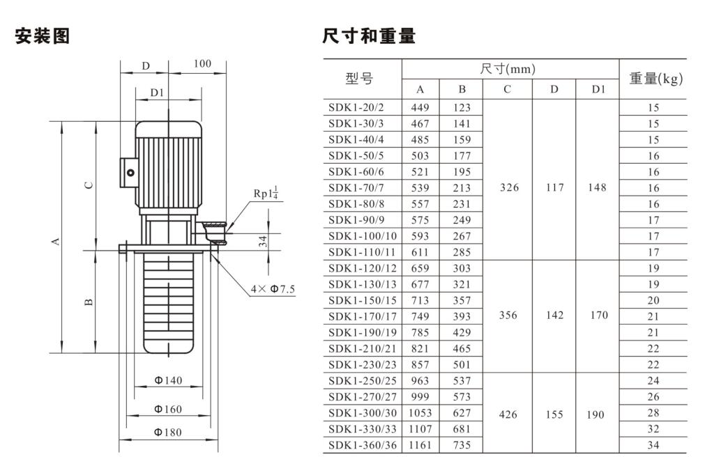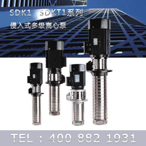 SDK1/SDKT1為配用標準電機的非自吸立式多級離心泵,電機軸和泵軸用聯(lián)軸器直接聯(lián)接的結(jié)構(gòu)。為滿足水槽或容器的安裝深度,可安裝空套的腔體來改變泵本身的侵入深度。