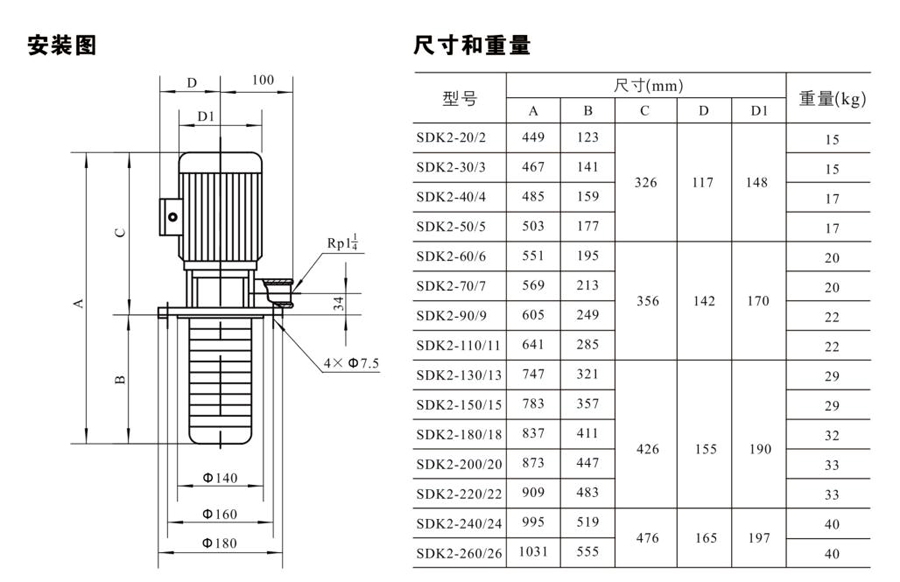 SDK2/SDKT2為配用標(biāo)準(zhǔn)電機的非自吸立式多級離心泵,電機軸和泵軸用聯(lián)軸器直接聯(lián)接的結(jié)構(gòu)。為滿足水槽或容器的安裝深度,可安裝空套的腔體來改變泵本身的侵入深度。