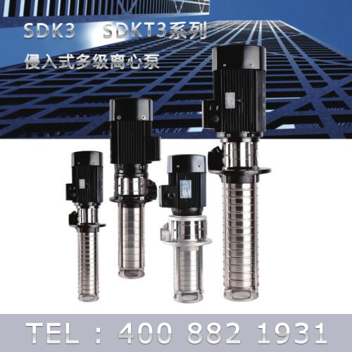 SDK3/SDKT3為配用標準電機的非自吸立式多級離心泵,電機軸和泵軸用聯(lián)軸器直接聯(lián)接的結構。為滿足水槽或容器的安裝深度,可安裝空套的腔體來改變泵本身的侵入 深度。