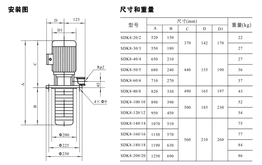 SDK8/SDKT8為配用標(biāo)準(zhǔn)電機(jī)的非自吸立式多級(jí)離心泵,電機(jī)軸和泵軸用聯(lián)軸器直接聯(lián)接的結(jié)構(gòu)。為滿足水槽或容器的安裝深度,可安裝空套的腔體來(lái)改變泵本身的侵入 深度。