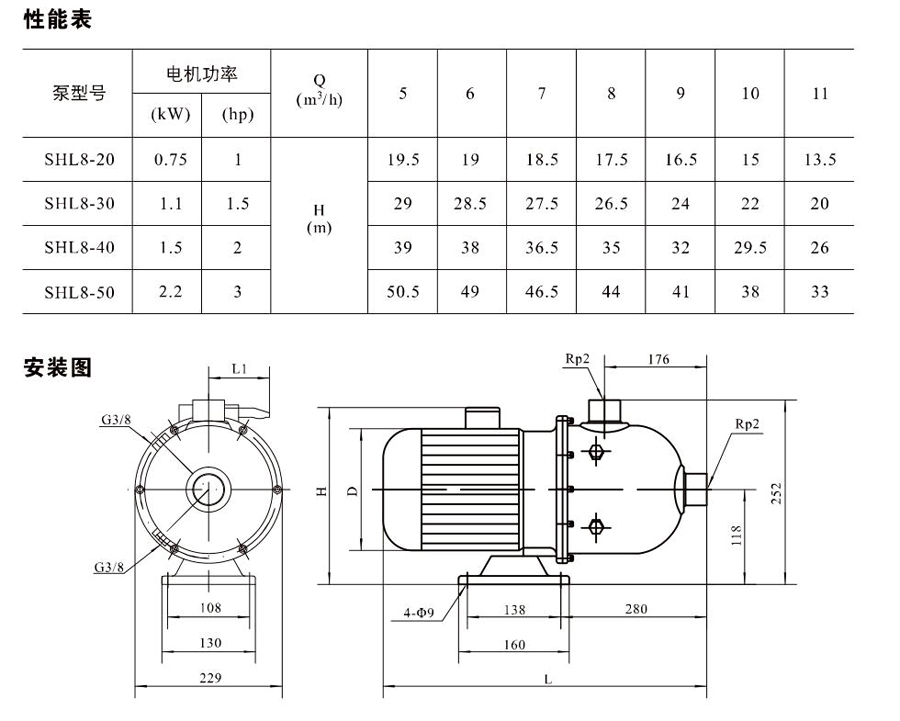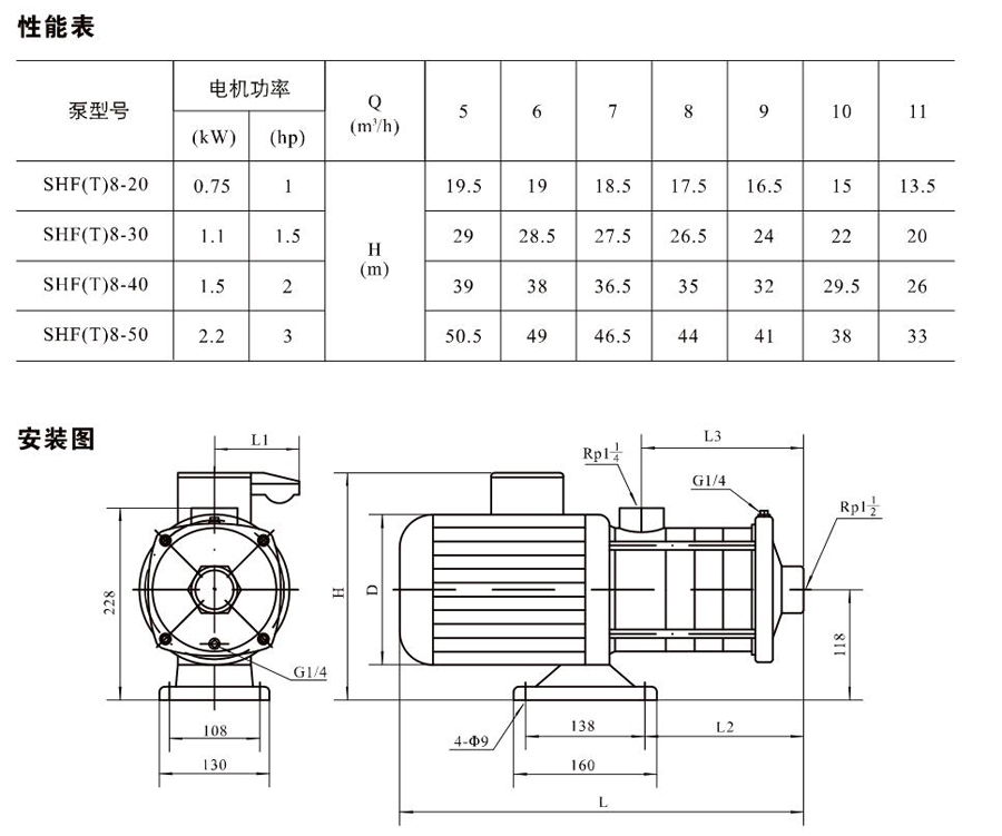 SHL/SHF/SHFT8為臥式多級非自吸多級離心泵,配加長軸電機。緊湊式結(jié)構(gòu)使泵尺寸很小,軸向入口或徑向出口。