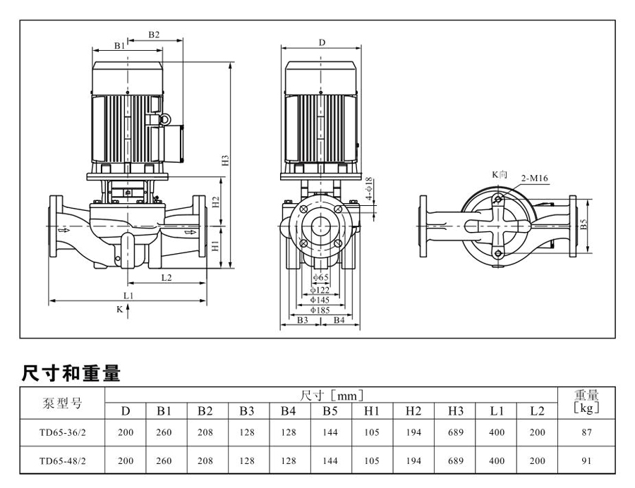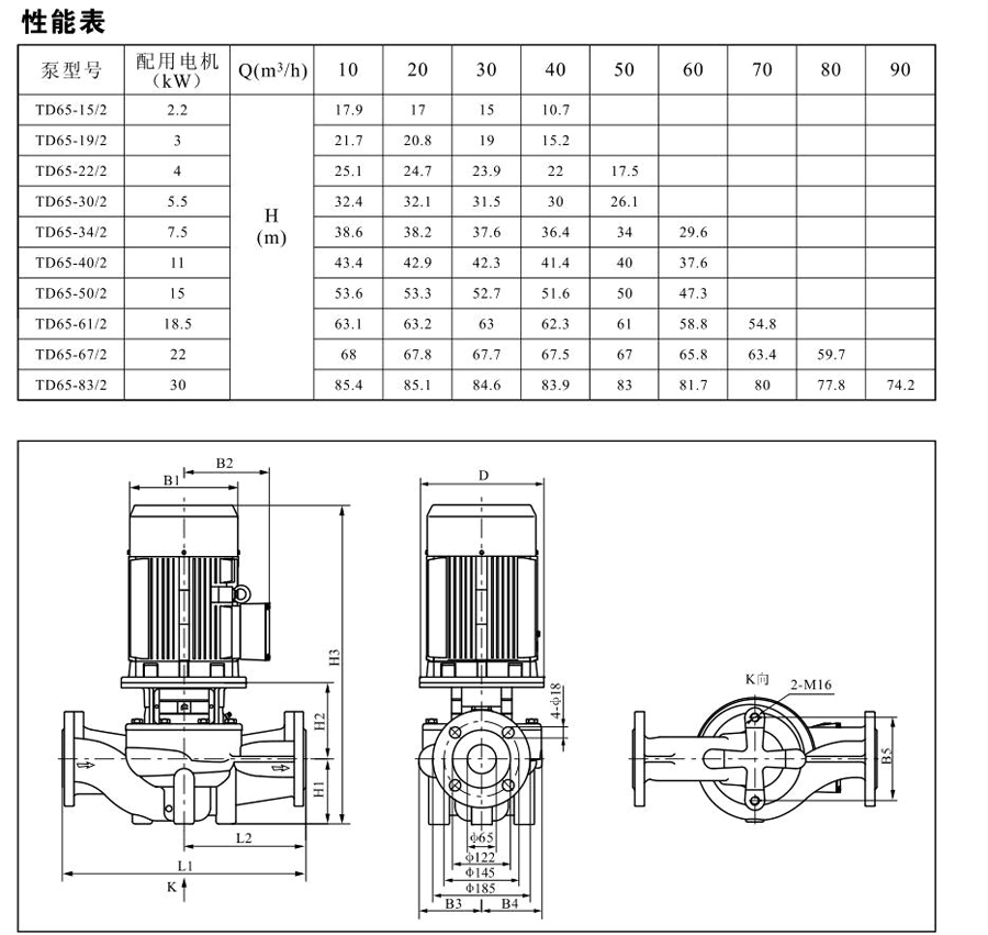 TD65系列單級(jí)管道離心泵,配有標(biāo)準(zhǔn)電 機(jī)和機(jī)械密封。此類產(chǎn)品的結(jié)構(gòu)與相近類型產(chǎn)品相比,更不易受到泵送液體中雜質(zhì)的影響。產(chǎn)品設(shè)計(jì)為頂部可拉出的拆裝形式,其可 以在不影響管路系統(tǒng)的情況下對(duì)泵進(jìn)行維修。所有泵采用創(chuàng)新式便拆式機(jī)械密封,更好機(jī)械密封無需拆卸電機(jī)。